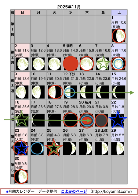 (カレンダーの意味は「2025年11月の自然観察日」を参照)